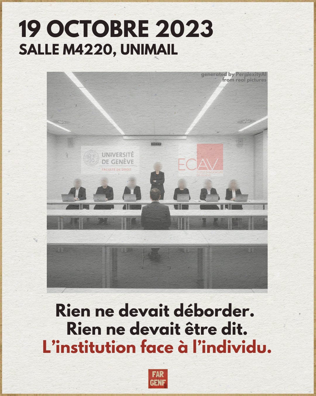 L’e-mail disait ce qu’il aurait préféré nier. FARJANI avait encore le droit de poser ses questions. Une séance exceptionnelle. Et on la lui a accordée – façon ECAV.