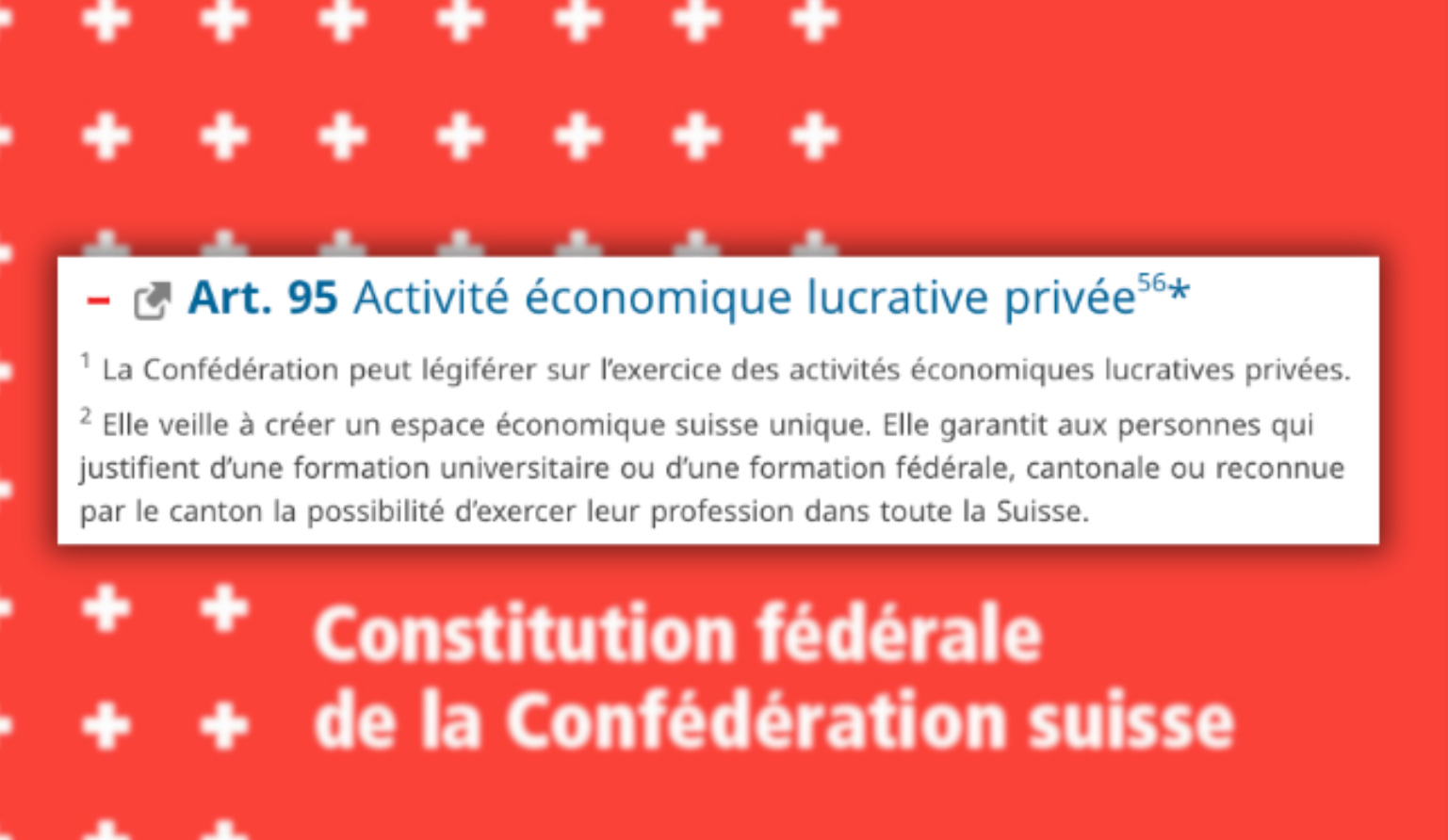 Le Gouvernement fédéral l’a écrit, noir sur blanc. « La LMI vise ainsi à éliminer les restrictions à l’accès au marché mises en place par les cantons et les communes […] Le législateur a tendu, en supprimant les entraves cantonales et communales, à consacrer la primauté du marché intérieur sur le fédéralisme »2. [ndlr : fédéralisme signifie laisser le plus de pouvoir aux Cantons au lieu de la Confédération ; ici c’est donc censé être l’inverse…]