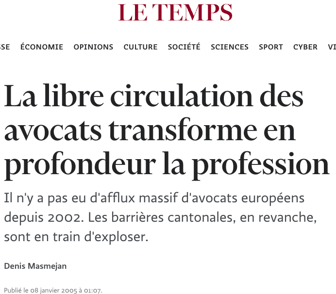 L’entrée en vigueur de la loi fédérale sur la profession d’avocat, la LLCA, est présentée comme une « véritable révolution dans le monde de l’avocature », dont on ne se « réjouit qu’avec modération ».