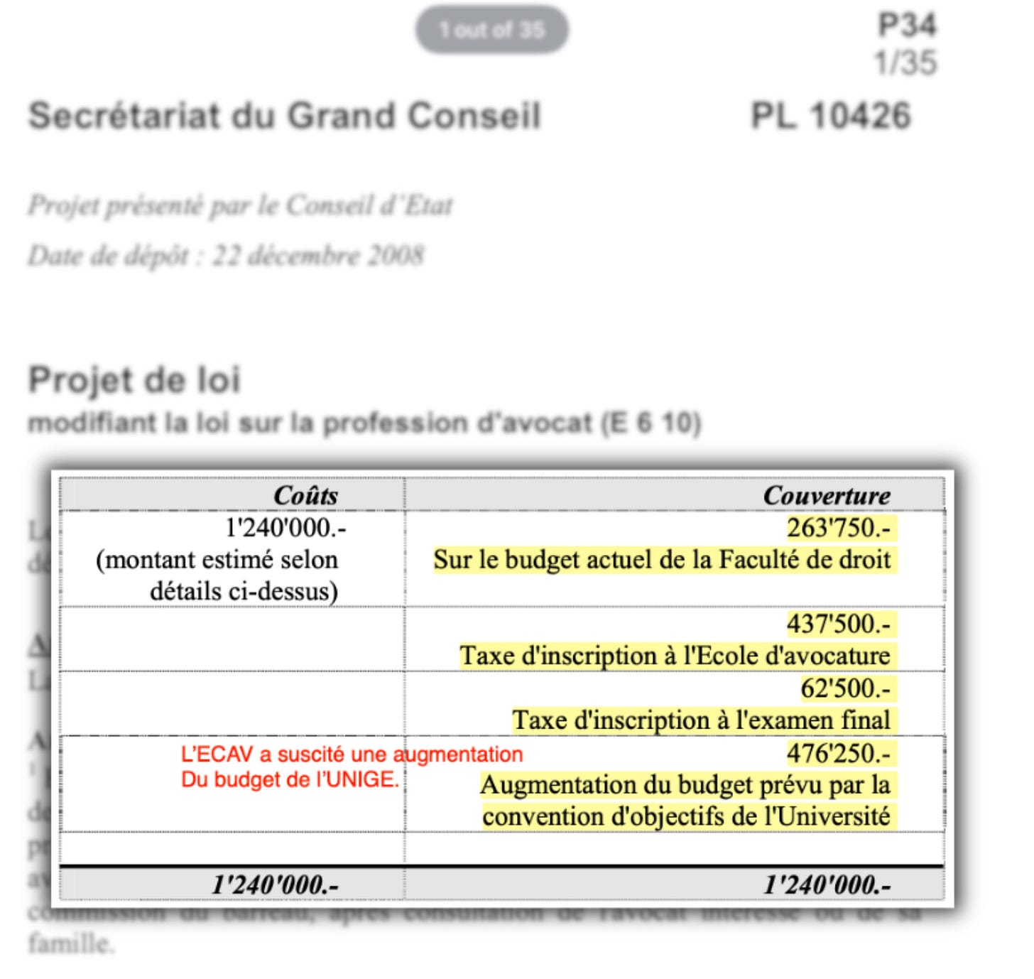 Entre 2008 et 2009, emporté par notre éternel Olivier JORNOT, le Grand Conseil examine un projet de loi (PL 10426) — le texte fondateur de l’ECAV, fruit exclusif de la commission ad hoc, composée d’avocats, tous pouvoirs confondus.